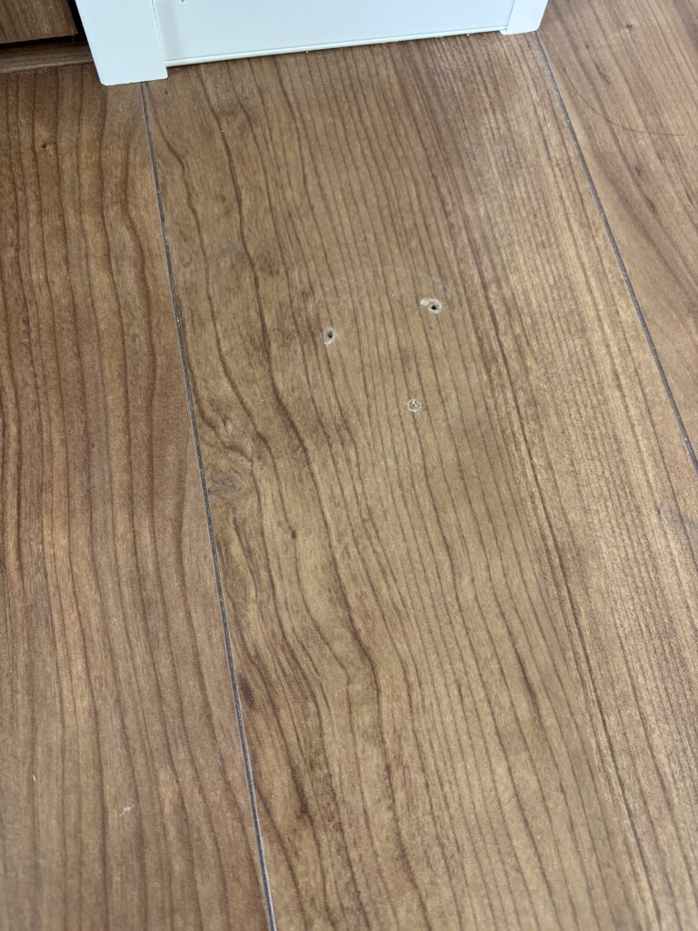 ナチュラルカラーのフローリングだと、比較的補修跡がわからないくらいまでに仕上げる事が可能です。